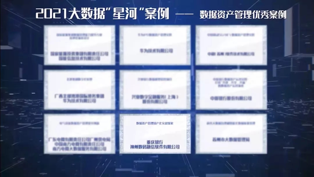由中国信息通信研究院、中国通信标准化协会指导,中国通信标准化协会大数据技术标准推进委员会主办的“2021 数据资产管理大会”云上召开。大会旨在推动数据要素市场化,加强行业间数据资产管理经验交流,充分发挥数据资产的价值。会上颁布了“2021大数据星河奖标杆案例”,BB贝博艾弗森官网协助重庆银行与兴业银行在数据资产管理方面的实践案例纷纷入选。