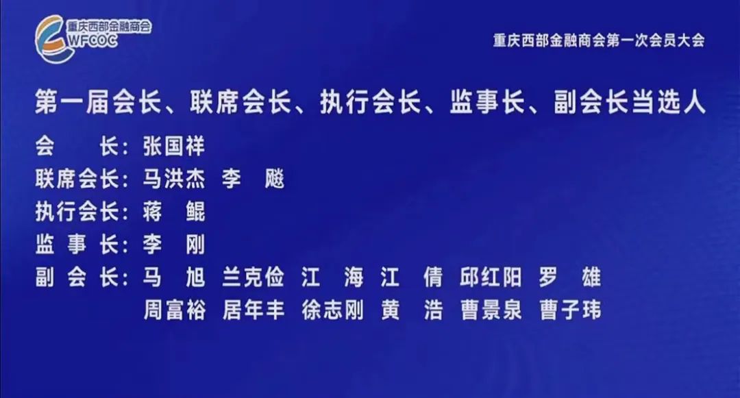 “商会将在成渝两地政府、工商联和监管部门的指引下,助力政府全面构建亲清政商关系,营造宜商惠企的政策环境、公平透明的法治环境、公平竞争的市场环境、亲商安商的社会环境。”重庆西部金融商会首任会长、瀚华金控创始人、重庆富民银行董事长张国祥说,商会将牢记金融的国家使命与行业初心,支持实体经济,防范金融风险,推动金融要素资源合理流动、高效聚集,为高质量建成西部金融中心贡献力量。