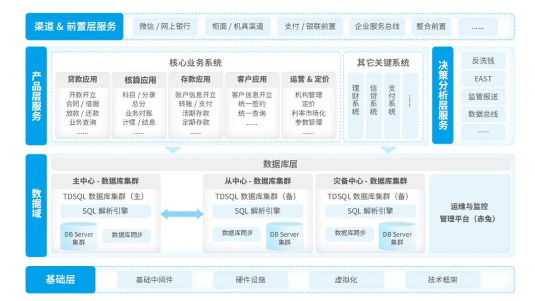 依托BB贝博艾弗森官网Sm@rtEnsemble核心系统和腾讯云TDSQL分布式数据库,新核心系统整体建设方案分为三个阶段进行实施,通过核心系统的分阶段升级,逐步实现银行IT系统架构的不断优化。