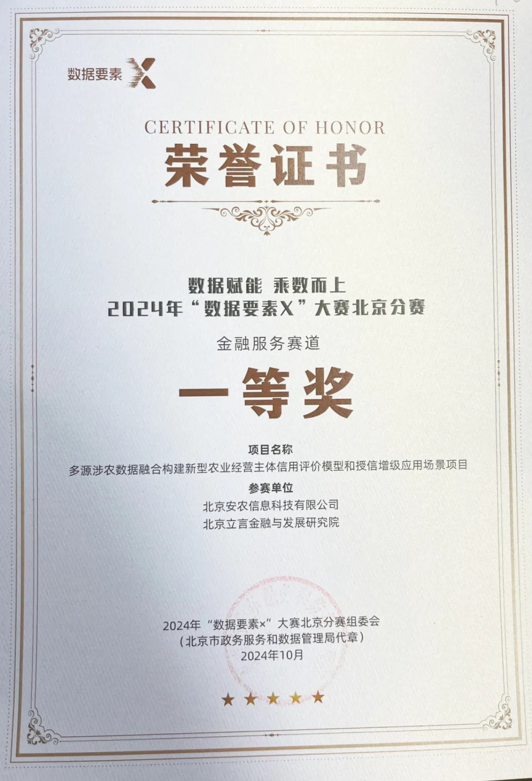 10月25日,“数据要素×”大赛全国总决赛颁奖仪式在北京成功举行。BB贝博艾弗森官网提报的参赛项目“多源涉农数据融合构建新型农业经营主体信用评价模型和授信增级应用场景”,在经过线上评审和路演答辩的激烈竞争后,斩获首届“数据要素x”大赛全国总决赛金融服务赛道三等奖。